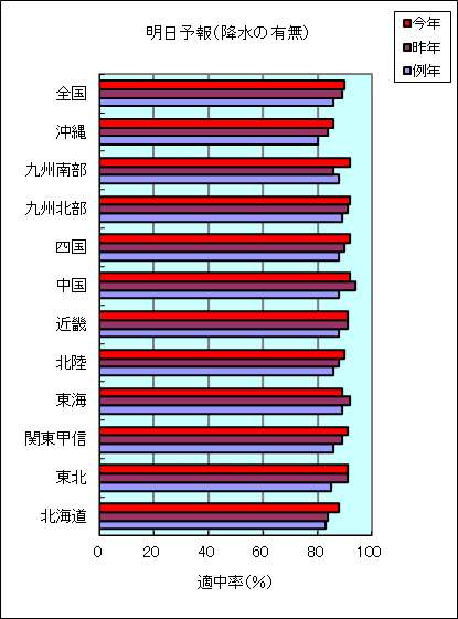| (注1)「降水の有無」「最高気温」「最低気温」の検証は、それぞれ17時発表予報が対象です。 |