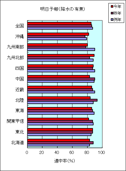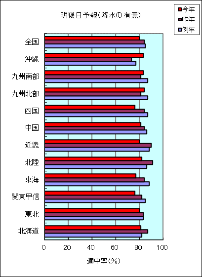 | (注1)「降水の有無」「最高気温」「最低気温」の検証は、それぞれ17時発表予報が対象です。 |