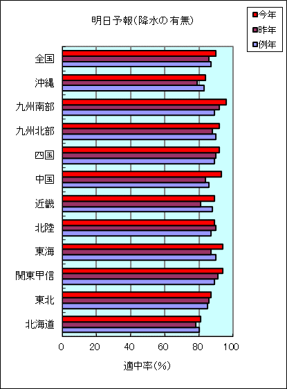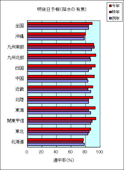 | (注1)「降水の有無」「最高気温」「最低気温」の検証は、それぞれ17時発表予報が対象です。 |