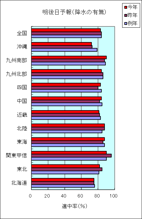 | (注1)「降水の有無」「最高気温」「最低気温」の検証は、それぞれ17時発表予報が対象です。 |