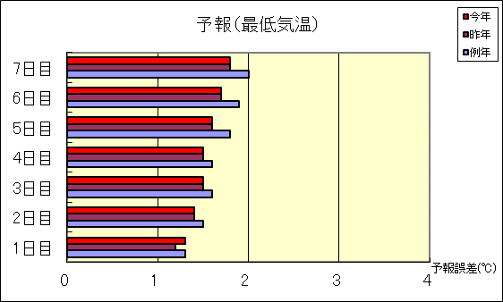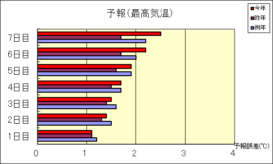 (注2)「最高気温」「最低気温」の検証は、1日目は17時発表予報、その他は11時発表予報が対象です。