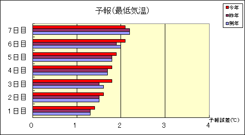 (注2)「最高気温」「最低気温」の検証は、1日目は17時発表予報、その他は11時発表予報が対象です。